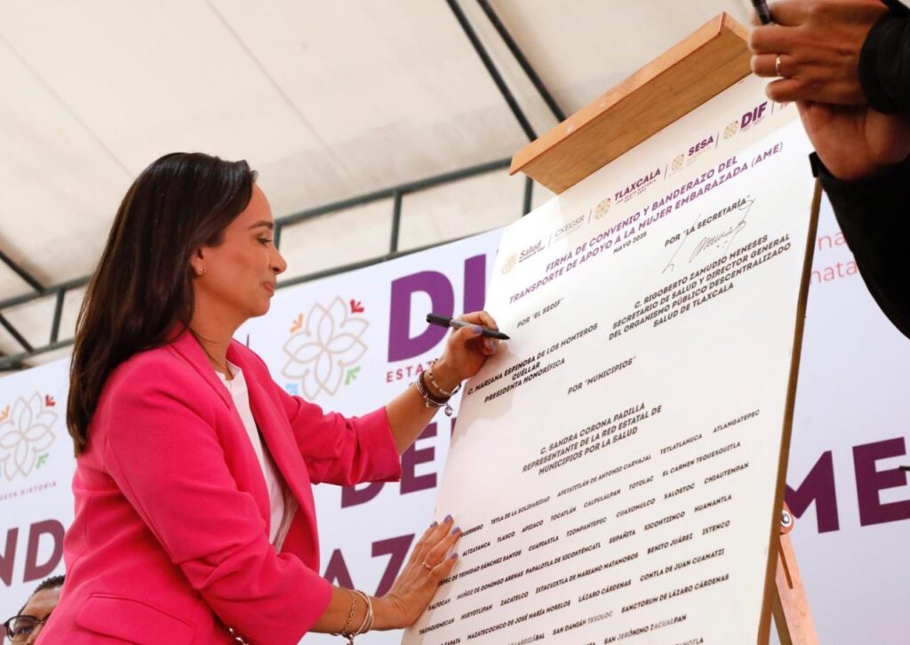 Para fortalecer la atención oportuna a la mujer embarazada y reducir la muerte materna en el estado de Tlaxcala, el secretario de Salud, Rigoberto Zamudio Meneses, la presidenta honorífica del Sistema Estatal para el Desarrollo Integral de la Familia (SEDIF), Mariana Espinosa de los Moteros Cuéllar, y 50 municipios, firmaron un convenio en materia de transporte de Atención a la Mujer Embarazada (AME) y rotulación de vehículos, con la finalidad de apoyar con la ampliación de la cobertura de atención a las mujeres en periodo de gestación.
