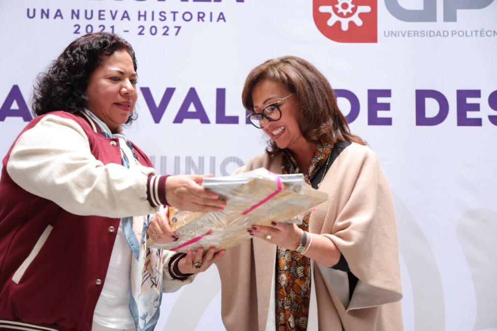 La gobernadora Lorena Cuéllar Cisneros encabezó la entrega de vales de despensa al personal docente, administrativo y de servicios de la Universidad Politécnica de Tlaxcala (UPTx), en reconocimiento a su trabajo. Además, supervisó los avances de la segunda etapa de construcción de la Unidad de Docencia (UD7), edificio que contribuirá al crecimiento académico y fortalecerá la infraestructura de esta institución de educación superior.