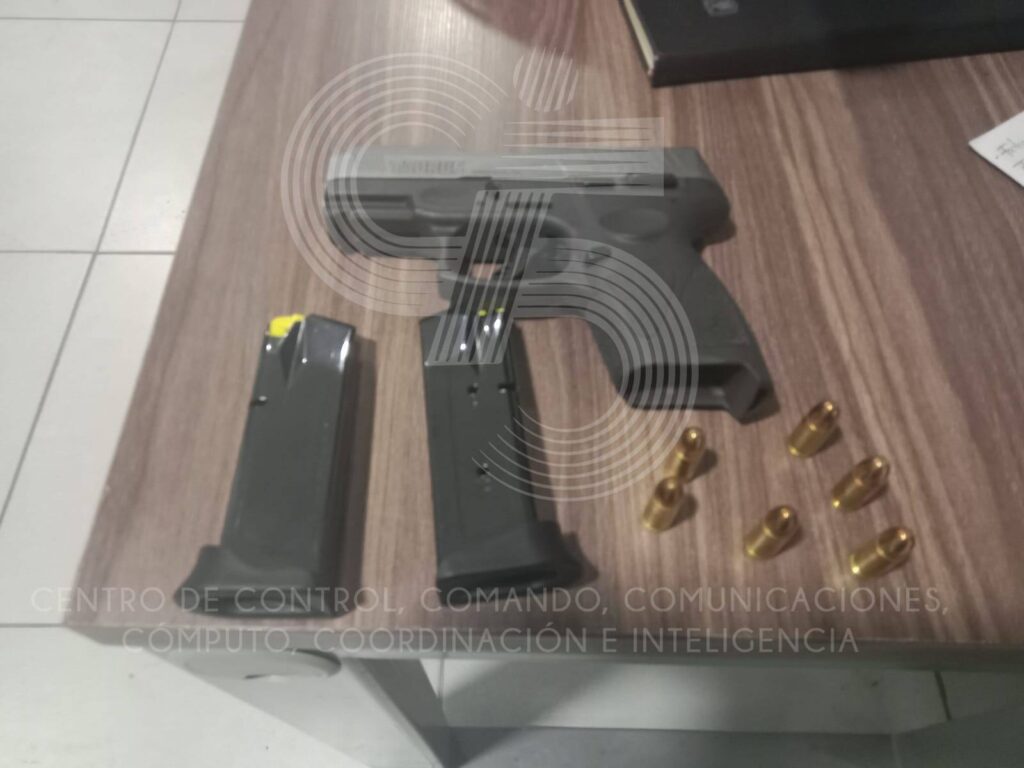 De acuerdo con el informe oficial, al momento de la inspección, se le encontró entre sus pertenencias una pistola tipo Taurus Bainbridge, así como dos cargadores abastecidos con seis cartuchos útiles. Por este motivo, fue asegurado y puesto a disposición de la autoridad ministerial correspondiente, donde se definirá su situación jurídica.