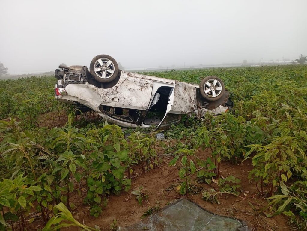 Al llegar al lugar, se confirmó la presencia de un automóvil fuera de la cinta asfáltica, el cual se encontraba volcado sobre terrenos de labor. En el sitio ya se encontraba personal de la Guardia Nacional, a quienes se les brindó apoyo en tareas de abanderamiento y control de vialidad para garantizar la seguridad en la zona.