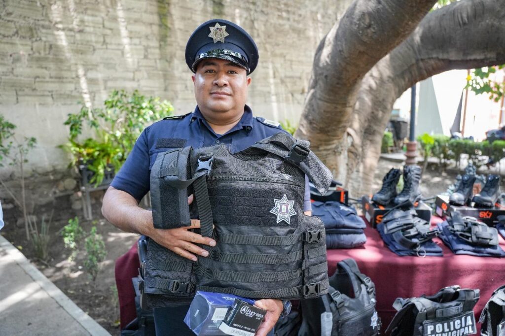 Durante el acto, celebrado en el patio del Palacio Municipal, el alcalde destacó que, por primera vez desde la creación de esta corporación, todos los elementos reciben equipo nuevo y personalizado para los 120 elementos. Esta inversión, afirmó, “no es un gasto, sino una apuesta por la vida, la paz y la tranquilidad de nuestra gente”.