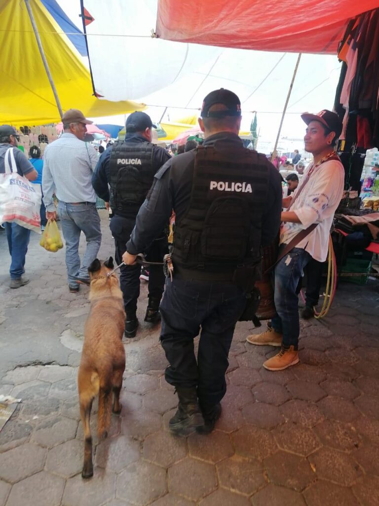 Presencia preventiva de Seguridad Pública Municipal en el Tianguis de Huamantla