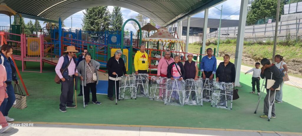 Durante esta entrega, se distribuyeron cinco sillas de ruedas infantiles, 60 andaderas, 60 bastones sencillos, 50 bastones para personas con discapacidad visual, 60 auxiliares auditivos y 15 paquetes de pañales para adulto, insumos que responden a necesidades específicas y urgentes detectadas en distintas comunidades del estado.