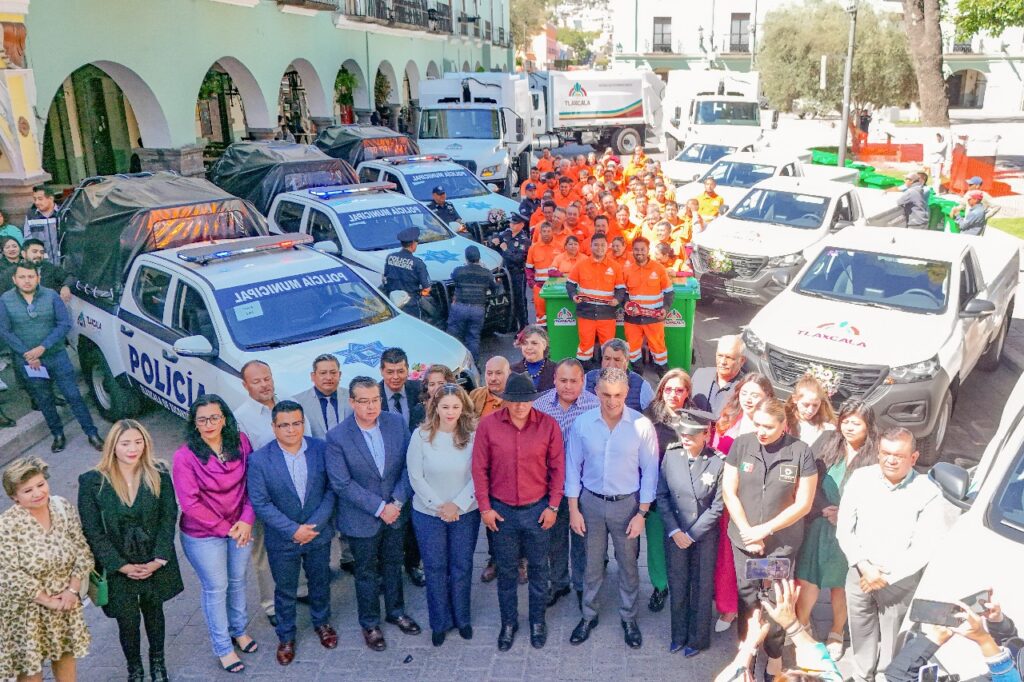 Al encabezar la entrega de nueve patrullas RAM totalmente equipadas, tres camiones compactadores de basura, seis camionetas utilitarias y 15 contenedores, el presidente municipal de Tlaxcala, Alfonso Sánchez García, afirmó que su gobierno trabaja con honestidad y con los pies en la tierra para mejorar la vida de las familias tlaxcaltecas.