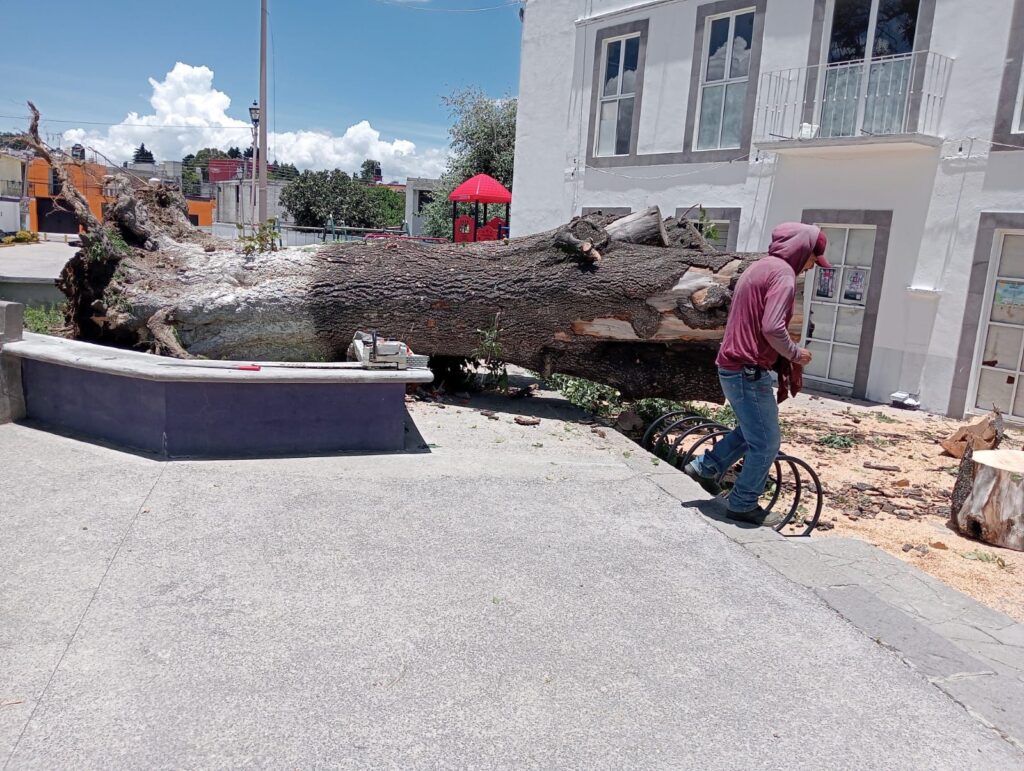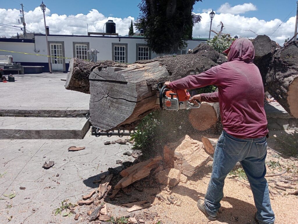 El Gobierno Municipal de Huamantla, a través de la Dirección de Servicios Municipales, realizó el retiro de un árbol milenario tipo fresno (ficus) que se encontraba en el parque del barrio de La Preciosa.