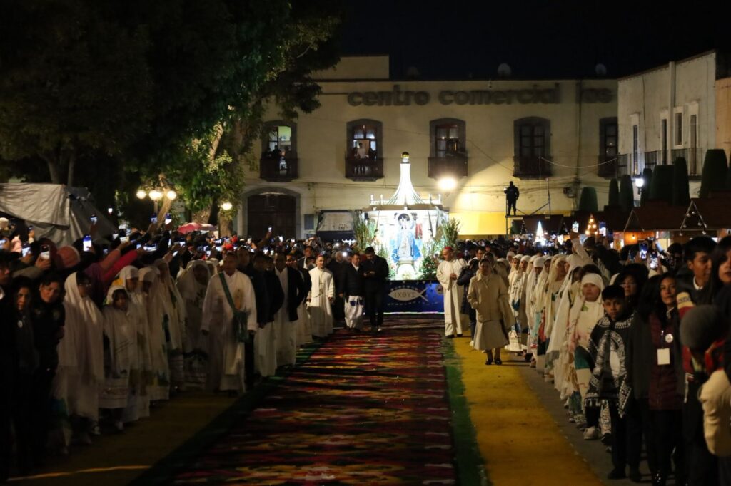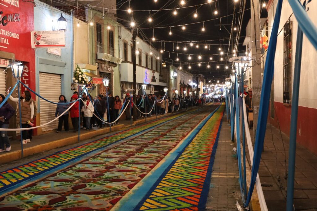 Huamantla vivió anoche una de sus celebraciones más emblemáticas del año “La Noche que Nadie Duerme”, una manifestación de fe, arte y comunidad que envuelve a todo el Pueblo Mágico. Locales y visitantes recorrieron las principales calles, adornadas con tapetes monumentales de aserrín, en homenaje a la Virgen de La Caridad.