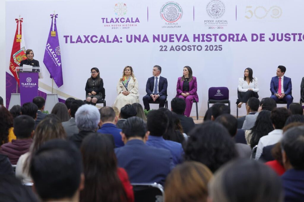 La gobernadora Lorena Cuéllar Cisneros encabezó el encuentro “Una nueva historia de Justicia”, donde representantes de los tres poderes del Estado, autoridades municipales y federales, así como juezas, jueces y magistrados electos, coincidieron en que en Tlaxcala se ha privilegiado el diálogo y la colaboración para garantizar una transición pacífica y ordenada en el Poder Judicial.