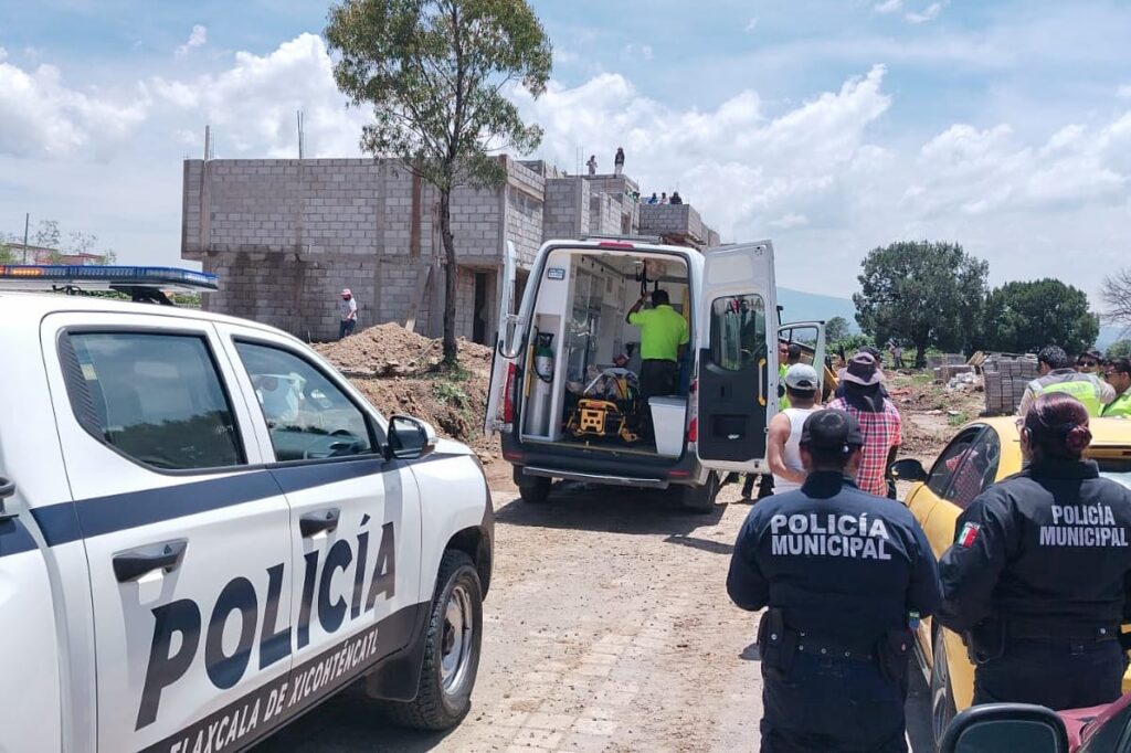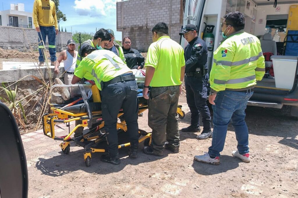 Al arribar al lugar, los efectivos y paramédicos del Centro Regulador de Urgencias Médicas de Tlaxcala (CRUMT) localizaron a un hombre de 48 años, quien presentaba una lesión en la pierna izquierda provocada por una barreta de acero tras caer en una excavación de más de dos metros de profundidad.