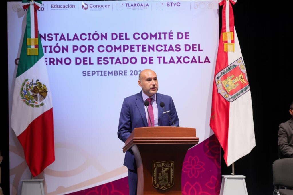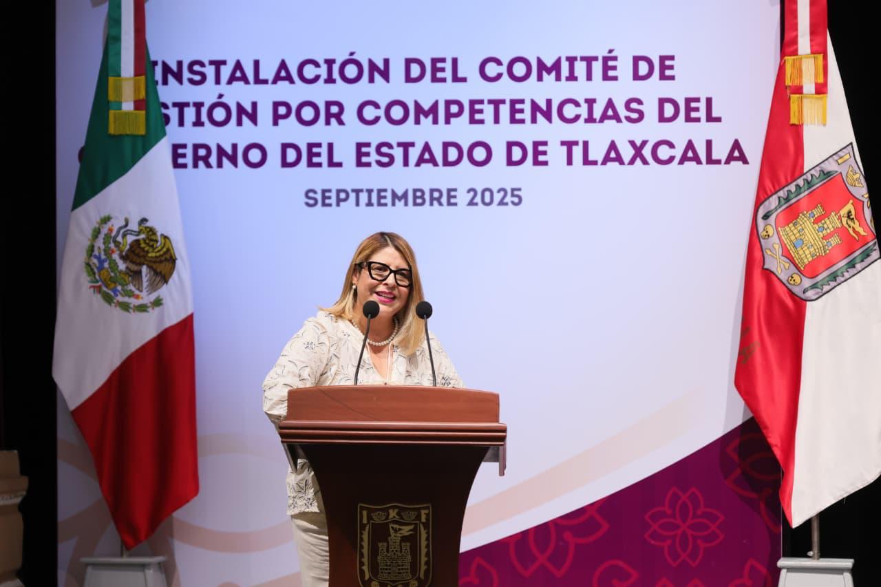 La gobernadora Lorena Cuéllar Cisneros y la directora general del Consejo Nacional de Normalización y Certificación de Competencias Laborales del Gobierno de México (Conocer), Guillermina Alvarado Moreno, encabezaron la firma de instalación del Comité de Gestión por Competencias de Tlaxcala, organismo que fortalecerá la capacitación y certificación de trabajadores, estudiantes y sectores productivos de la entidad, con el propósito de mejorar las condiciones de vida de las familias tlaxcaltecas.