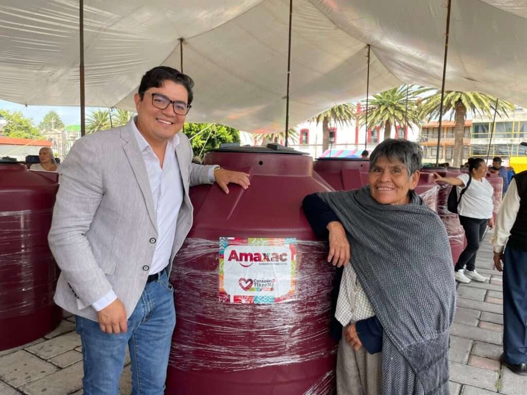 La entrega se realizó a través del programa 1 + 1, donde la Secretaría de Bienestar Tlaxcala aportó 60 tinacos y el Gobierno Municipal sumó otros 60, logrando así un impacto directo en 120 familias amxaquenses.