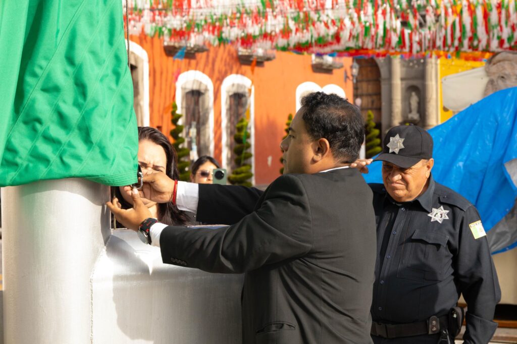 La actividad fue encabezada por alumnos y docentes de la Escuela Primaria “Justo Sierra” y por autoridades del Barrio de San Antonio, quienes con respeto y civismo rindieron honores a los símbolos patrios. El evento inició con el izamiento de la Bandera Monumental, a cargo de la escolta de la Dirección de Seguridad Pública, Tránsito Municipal y Protección Civil.