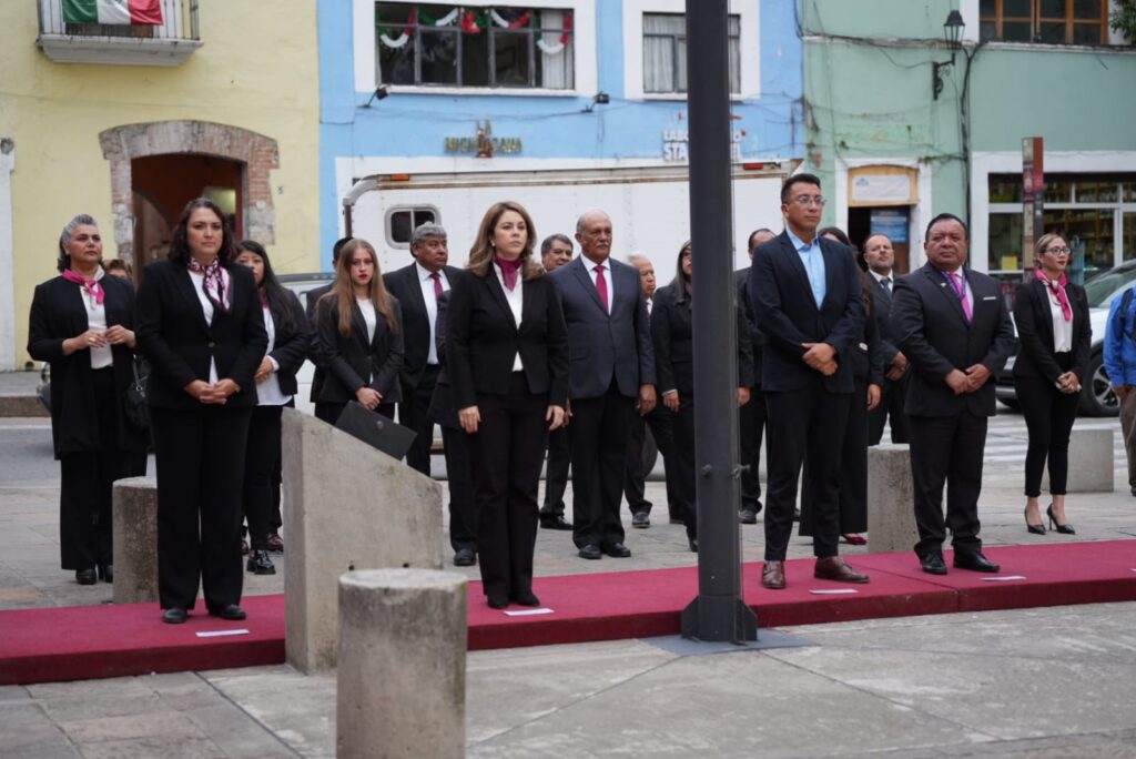 AYUNTAMIENTO DE TLAXCALA LLEVA A CABO EL ARRÍO DE LA BANDERA EN EL CENTRO HISTÓRICO
