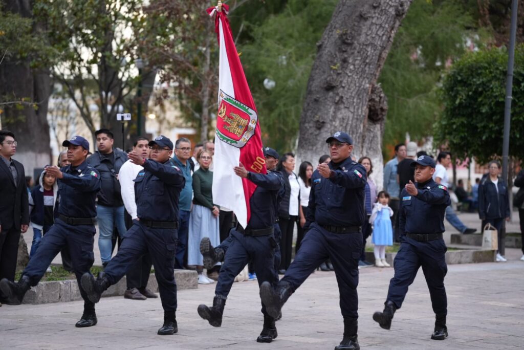La ceremonia fue presidida por la síndica municipal, Ivonne Hernández Blancas, en representación del alcalde Alfonso Sánchez García, y reunió a autoridades, trabajadores municipales y ciudadanía que se sumó al acto cívico.