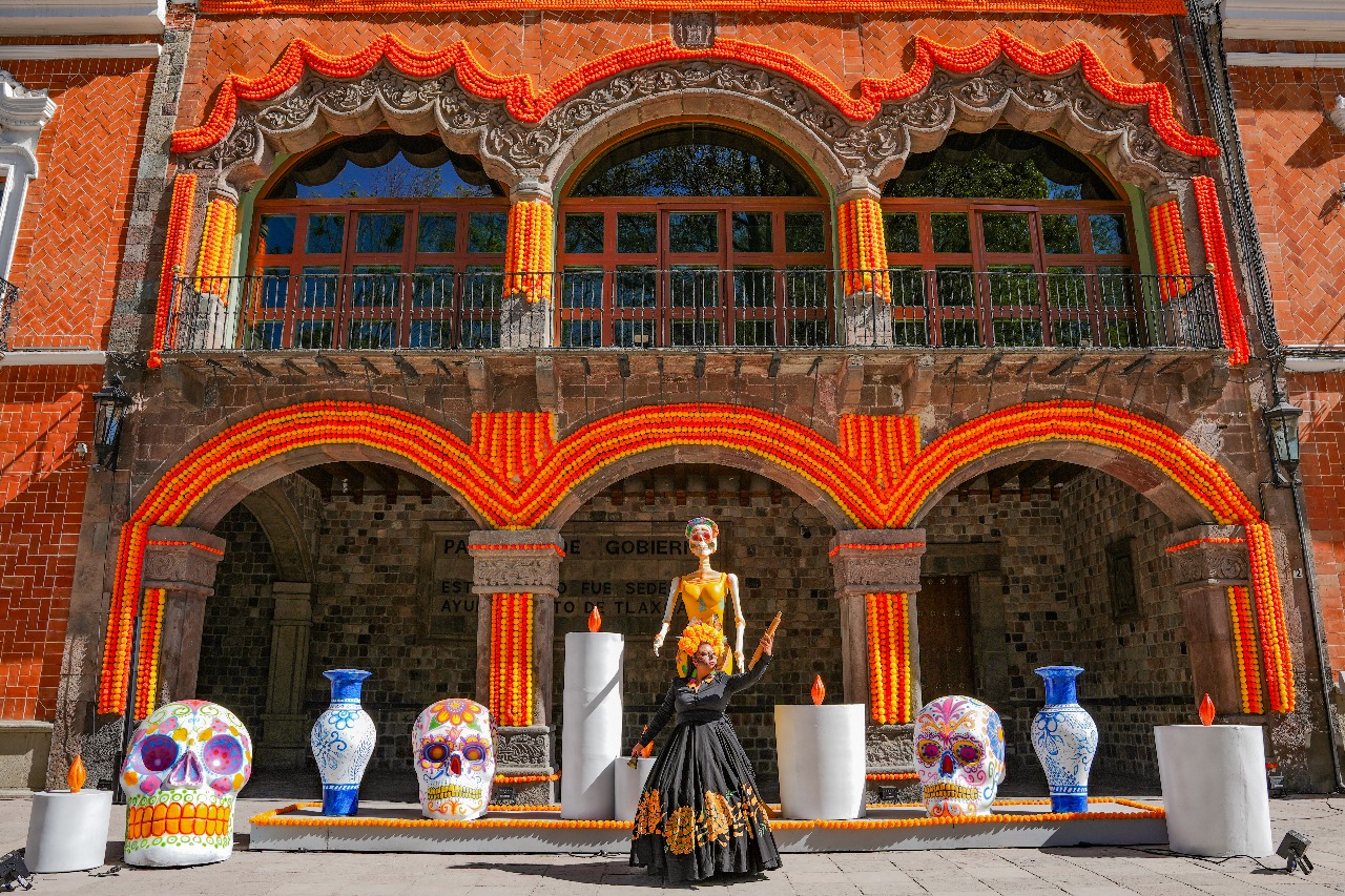 LA PREGONERA DEL REY SE TRANSFORMA EN CATRINA Y LLENA DE MISTICISMO EL CENTRO HISTÓRICO DE TLAXCALA