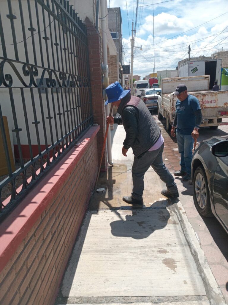 Asimismo, se realizaron acciones de desazolve en la Calle Narciso Mendoza esquina con Morelos, con el objetivo de prevenir encharcamientos y mantener en buen estado la red de drenaje sanitario.