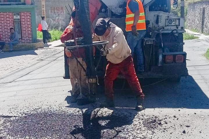 En esta ocasión, se realizaron trabajos en la calle Ferrocarril Mexicano, en la localidad de Santa María Ixtulco, donde cuadrillas atendieron puntos afectados por el deterioro del pavimento.