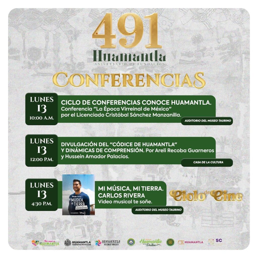 En el marco del 491 aniversario de la fundación de Huamantla, el Gobierno Municipal llevará a cabo este día una jornada cultural como parte del ciclo de conferencias “Conoce Huamantla”, con actividades que celebran la historia, la identidad y el orgullo local.