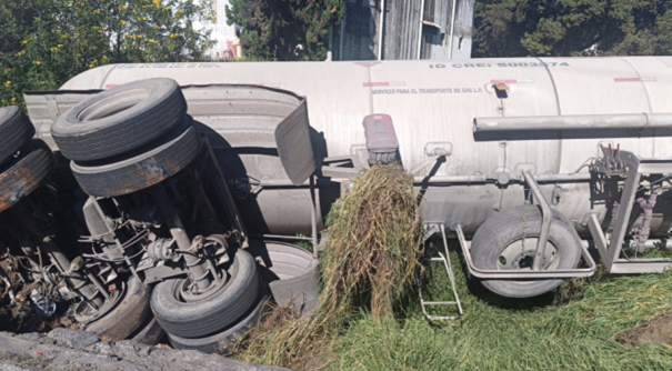 TRÁNSITO LENTO EN LA CARRETERA APIZACO–TLAXCALA TRAS VOLCADURA DE PIPA CON COMBUSTIBLE