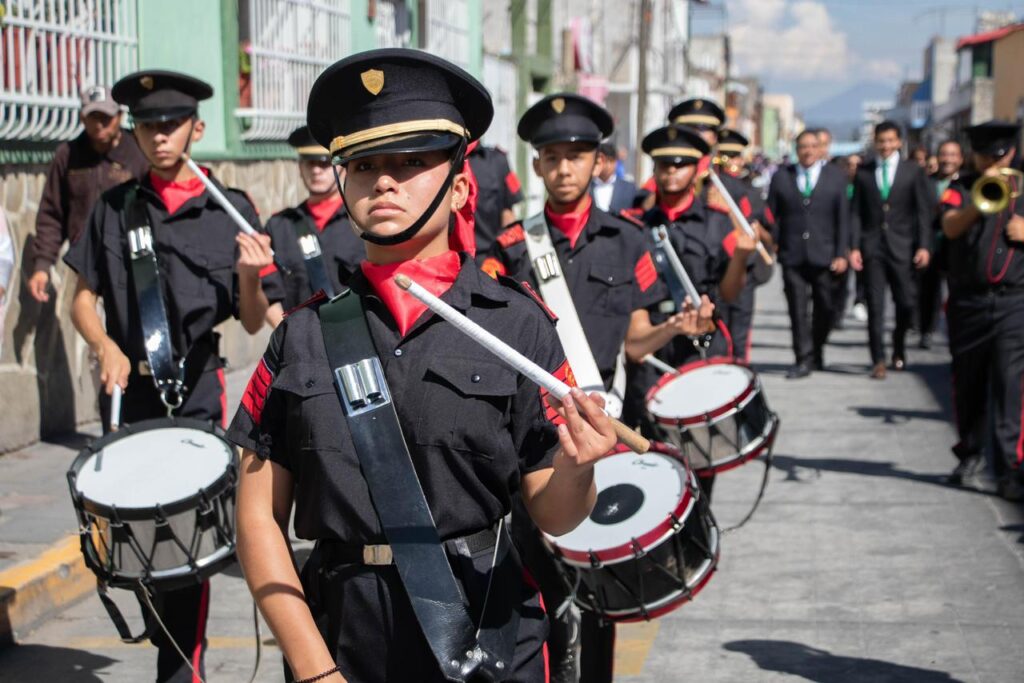Posteriormente, el contingente avanzó por las principales calles hasta llegar a la Plazuela del Barrio de San Lucas, sede del acto cívico conmemorativo, donde se rindieron honores al Lábaro Patrio y se destacó la grandeza cultural, histórica y social de Huamantla.