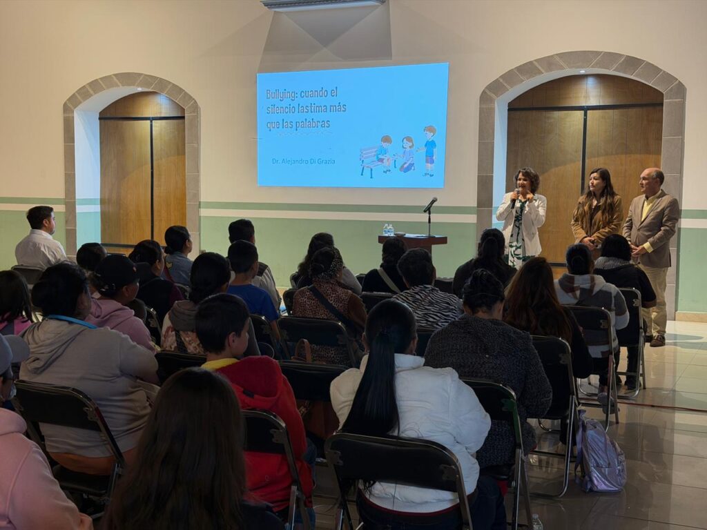 El Sistema Municipal DIF Huamantla llevó a cabo la conferencia “Cuando el silencio duele: ¿mi hijo es víctima, agresor o testigo?”, impartida por el Dr. Alejandro Di Grazia Rao, con el propósito de brindar herramientas a madres y padres de familia, docentes y directivos para detectar, prevenir y atender situaciones de bullying en niñas, niños y adolescentes.