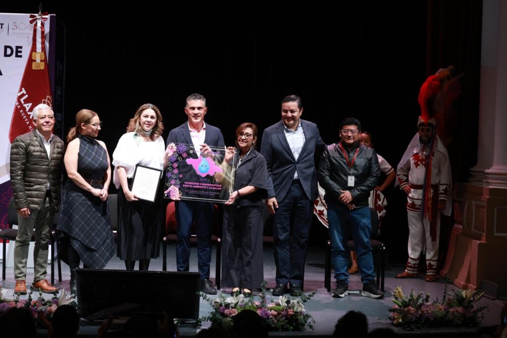 En el Teatro Xicohténcatl, la mandataria estatal expresó que este logro responde al compromiso de garantizar el acceso a agua de calidad a la población como un derecho básico de salud y bienestar.