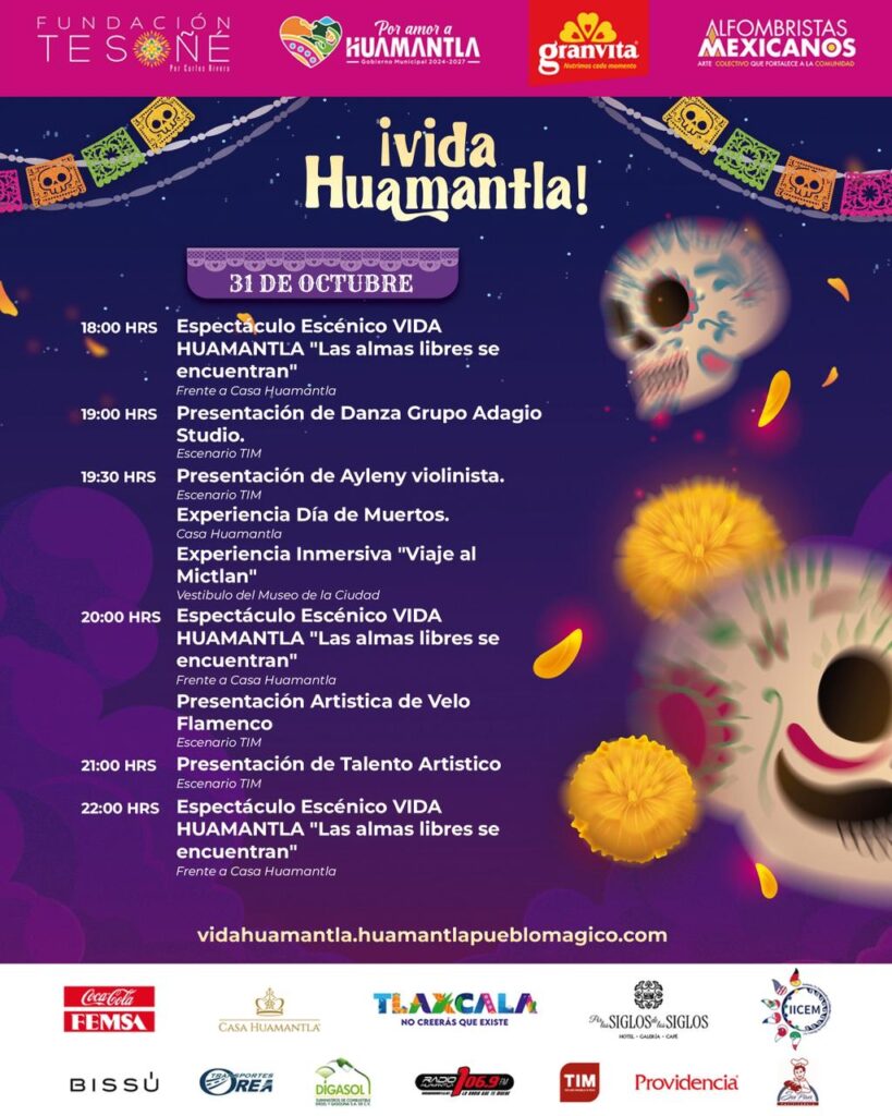 Asimismo, invitamos a la población a disfrutar del programa previsto para este viernes 31 de octubre en el Parque Juárez, donde se realizarán espectáculos escénicos, presentaciones artísticas y experiencias inmersivas que promueven nuestras tradiciones y fortalecen la convivencia familiar.