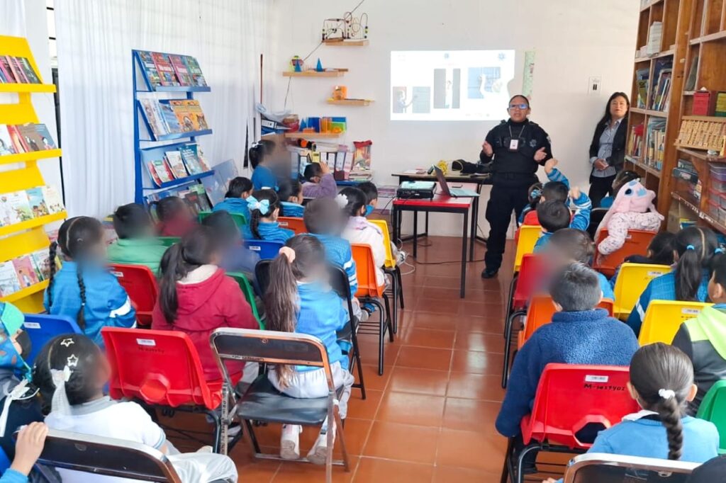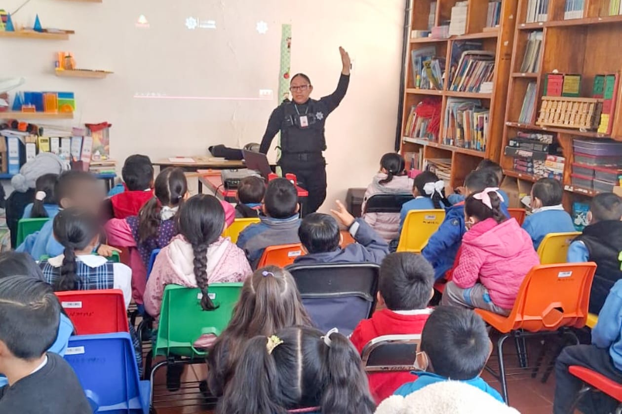 Como una forma de promover entornos escolares más seguros y fomentar la cultura de la paz desde la niñez, elementos de la Dirección de Seguridad, Protección Ciudadana y Movilidad del Ayuntamiento de Tlaxcala impartieron una plática preventiva dirigida a alumnas y alumnos de la Escuela Primaria “Héroes de Chapultepec”, en la comunidad de Ocotlán.