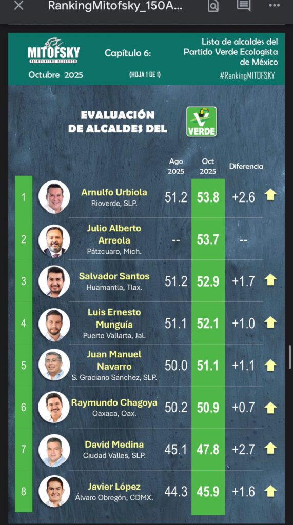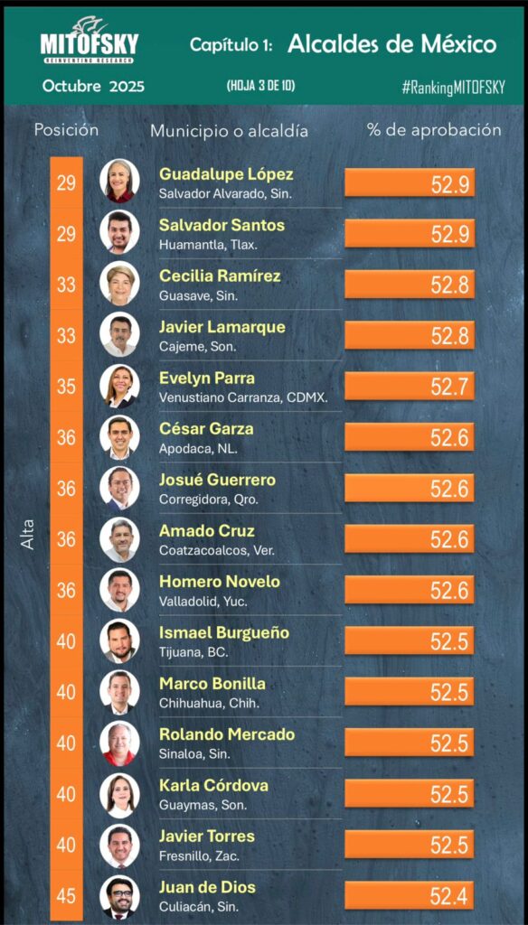 Este resultado coincide con la medición de Demoscopia Digital, que en su ranking estatal lo ubica en el primer lugar entre los alcaldes de Tlaxcala, obteniendo una aprobación del 57.5%, consolidándose como el mejor evaluado en la entidad.