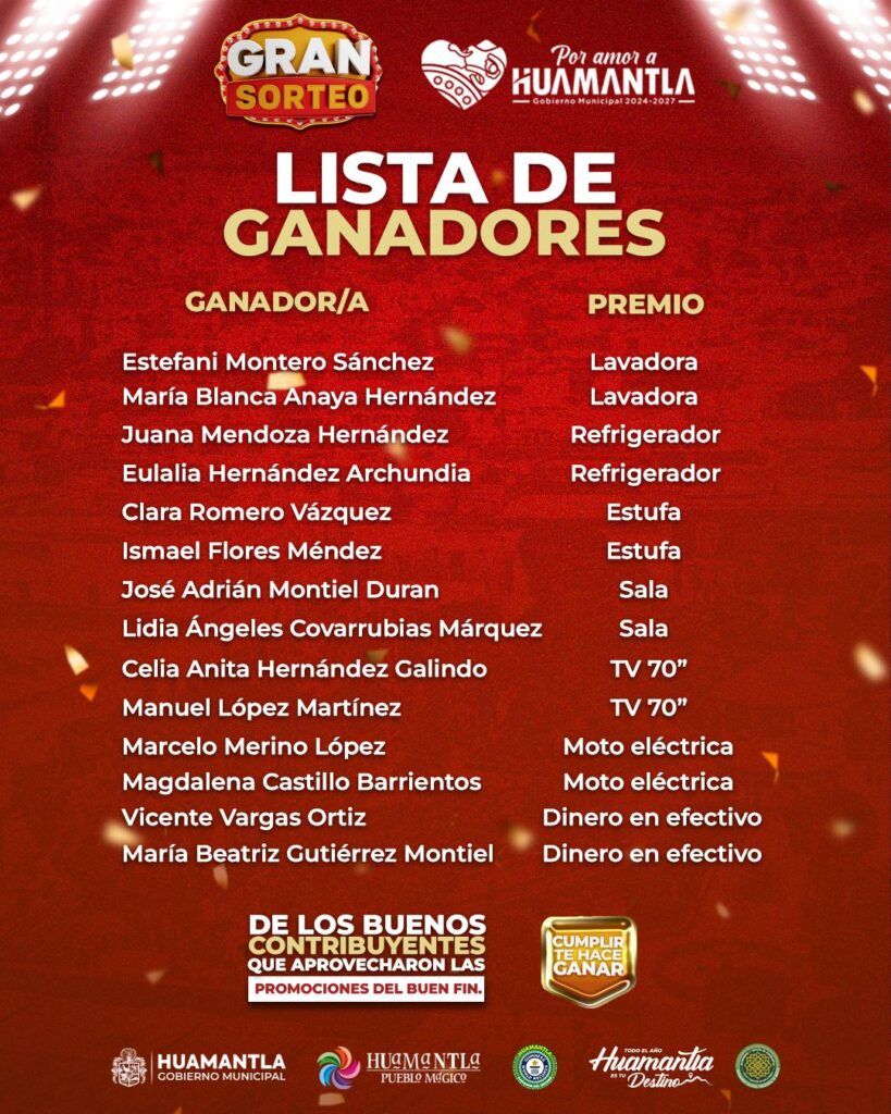 RIFA DEL BUEN FIN PREMIA A USUARIOS HUAMANTLECOS CUMPLIDOS QUE APROVECHARON LAS PROMOCIONES DEL GOBIERNO MUNICIPAL DE HUAMANTLA