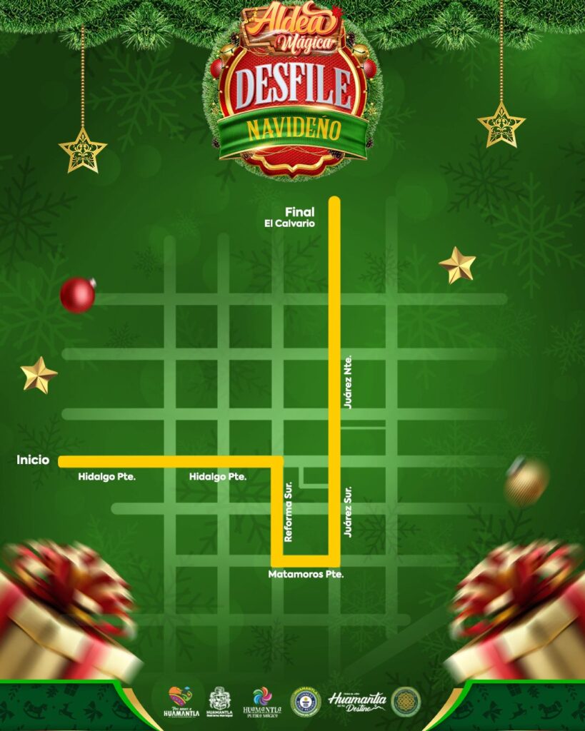 El H. Ayuntamiento de Huamantla invita a las familias huamantlecas y visitantes a disfrutar del Desfile Navideño 2025, que se llevará a cabo este sábado 6 de diciembre a las 18:00 horas como parte de las actividades de la Aldea Mágica.