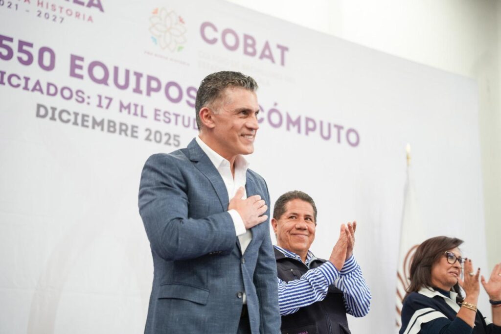A su vez, el director general del COBAT, José Alonso Trujillo Domínguez, agradeció la presencia de las autoridades y destacó que con esta entrega suman ya 1,100 equipos de cómputo destinados a fortalecer los planteles. Durante el evento también se presentó la nueva botarga oficial del subsistema, Cobati@.