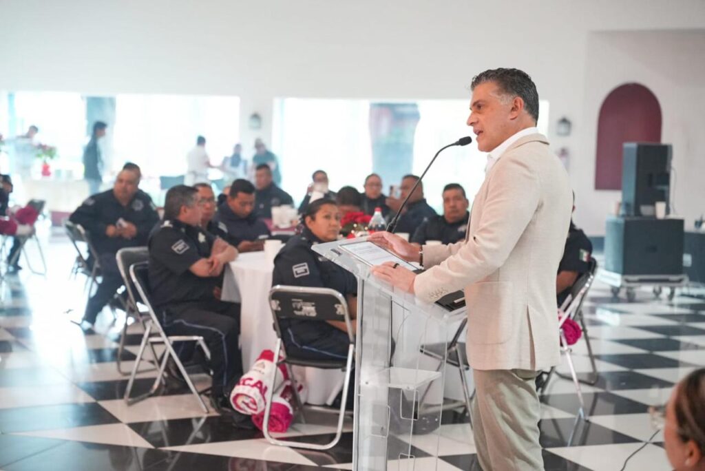 En un ambiente cercano y de cordialidad, Alfonso Sánchez García destacó que el gobierno municipal que encabeza tiene la convicción de que cuidar a quienes cuidan no es un discurso, sino una responsabilidad que se traduce en acciones concretas y en condiciones dignas para que las y los policías puedan cumplir con su labor diaria.