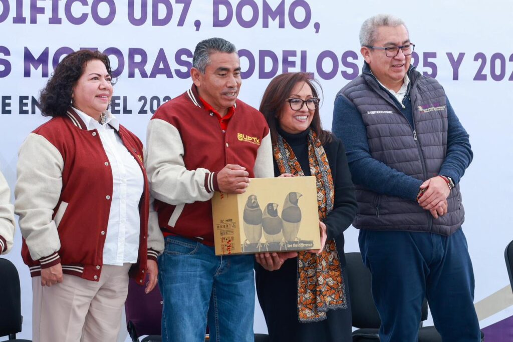 Por último, la mandataria estatal entregó cuatro unidades motoras, entre ellas automóviles y camionetas modelos 2025 y 2026, que se integran al parque vehicular de la Universidad para garantizar traslados seguros en visitas industriales, actividades académicas y administrativas.