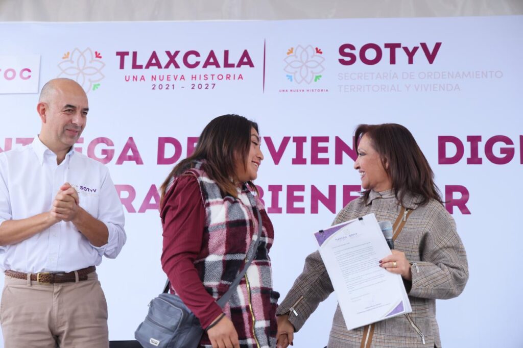 Al encabezar la entrega de apoyos del programa “Vivienda para tu Bienestar” en San Cosme Xaloztoc, la gobernadora destacó que el bienestar comienza en los hogares