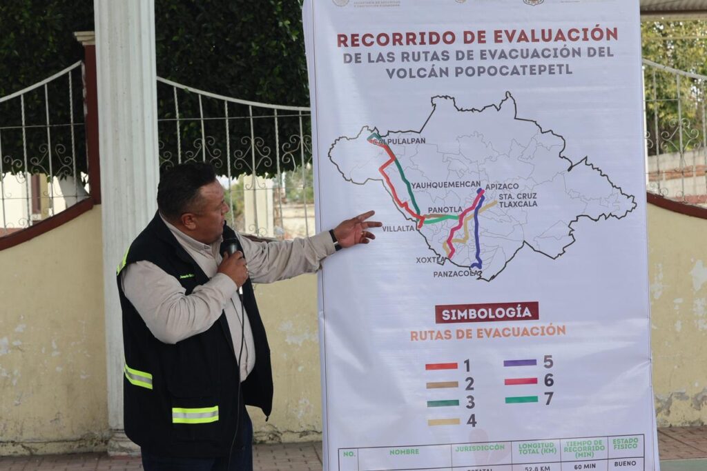 La titular de la Coordinación Nacional de Protección Civil (CNPC) detalló que se cuenta con un mapa de las siete rutas de evacuación, las cuales serán verificadas en su totalidad para corroborar que el Plan Homologado Popocatépetl se aplique de manera efectiva.