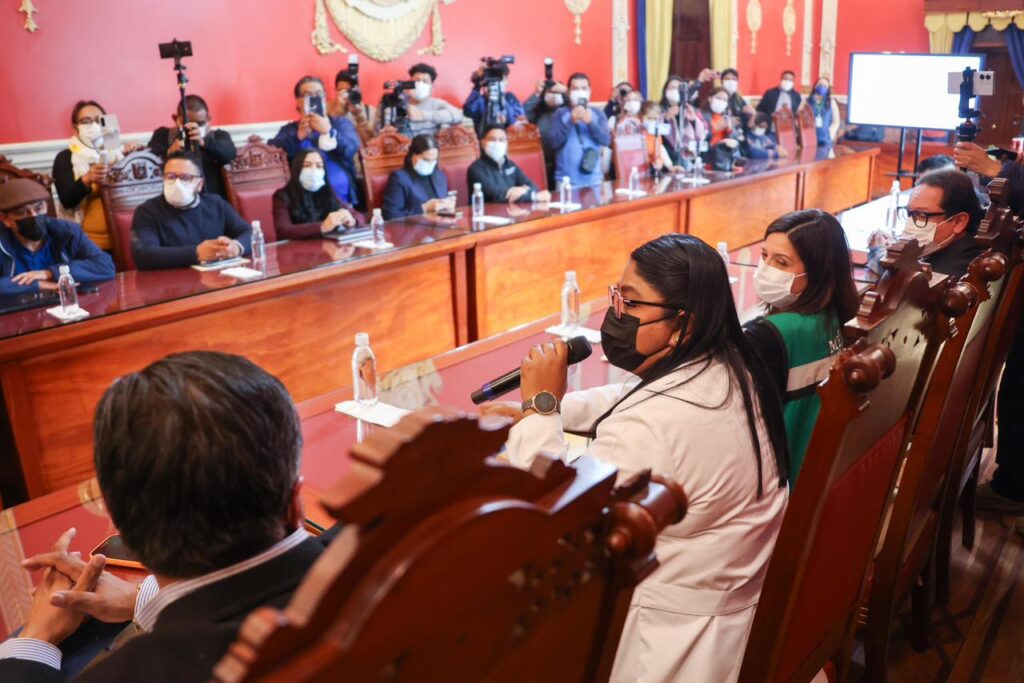 La gobernadora Lorena Cuéllar Cisneros encabezó la conferencia de prensa en la que el Consejo Estatal de Salud presentó las medidas preventivas que se implementarán para la contención del caso de sarampión confirmado en la entidad.