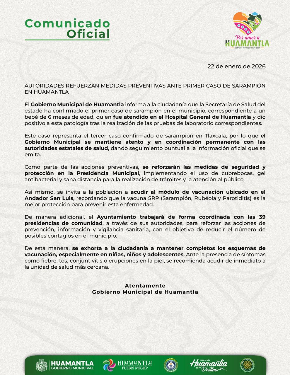El Gobierno Municipal de Huamantla informa a la ciudadanía que la Secretaría de Salud del…