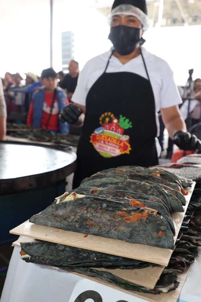 Tras el corte del listón inaugural de la Feria de la Quesadilla y el Tlacoyo 2025, se entregó un reconocimiento a la señora María Margarita Juárez Susano, a nombre de las cocineras del municipio. Posteriormente, se hizo un recorrido por el montaje de las quesadillas y se hizo su repartición. En el evento estuvieron presentes los diputados locales Vicente Morales Pérez y Silvano Garay Lleredo, y representantes de Guinness World Records.