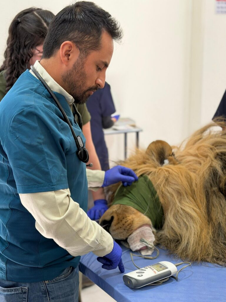 Durante esta jornada, médicos veterinarios especializados en medicina de fauna silvestre, anestesiología, diagnóstico clínico, nutrición y manejo etológico, provenientes de México, Perú y Chile, realizaron evaluaciones clínicas integrales a grandes felinos, mediante protocolos de contención química segura que permiten revisar el estado de salud de los ejemplares sin comprometer su bienestar.