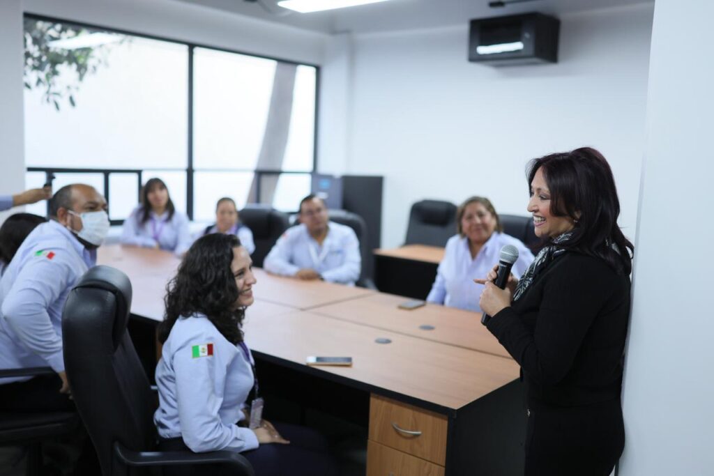 Lorena Cuéllar también resaltó la adquisición de tecnología de alta especialidad, como el acelerador lineal para el tratamiento de pacientes con cáncer e informó que, con el respaldo de la presidenta de México, Claudia Sheinbaum, este año iniciará la construcción de un Hospital Regional del IMSS con capacidad para atender a 500 mil personas.