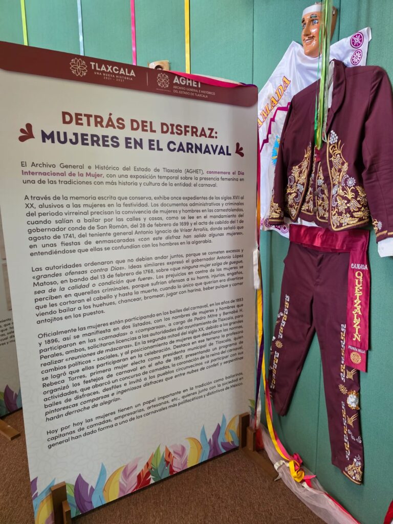 El Archivo General e Histórico del Estado de Tlaxcala (AGHET) inauguró la exposición temporal “Detrás del disfraz: Mujeres en el Carnaval”, una muestra que visibiliza la participación de las mujeres en el carnaval tlaxcalteca y reconoce su papel en la preservación de una de las tradiciones de mayor arraigo en la entidad.