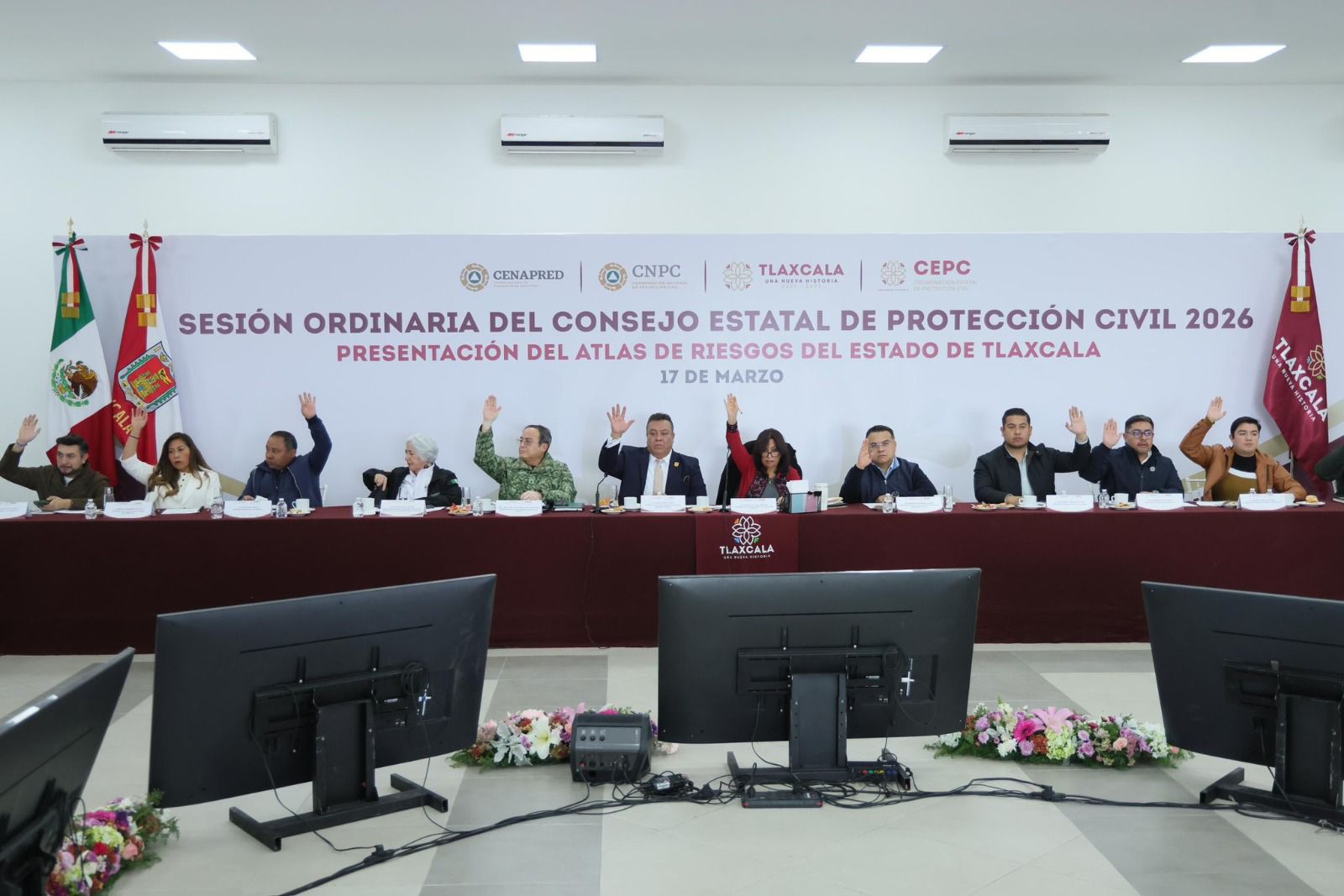 La sesión fue encabezada por la gobernadora Lorena Cuéllar Cisneros, junto con el coordinador estatal de Protección Civil, Juvencio Nieto Galicia, y contó con la presencia de representantes de dependencias estatales y federales , quienes refrendaron la importancia del trabajo conjunto para salvaguardar la integridad de la población.