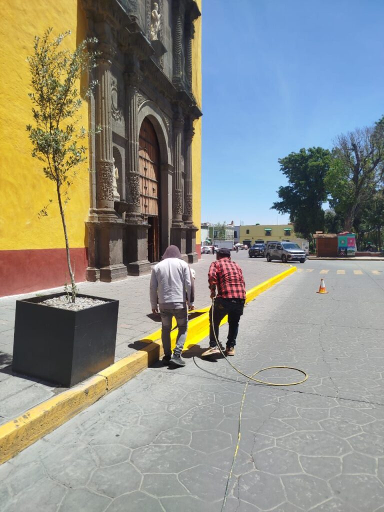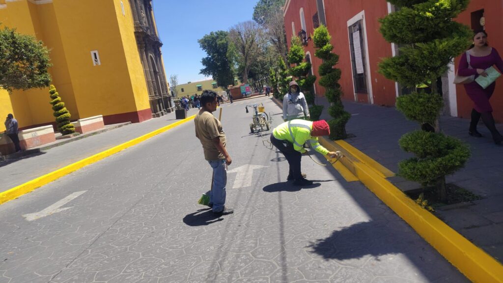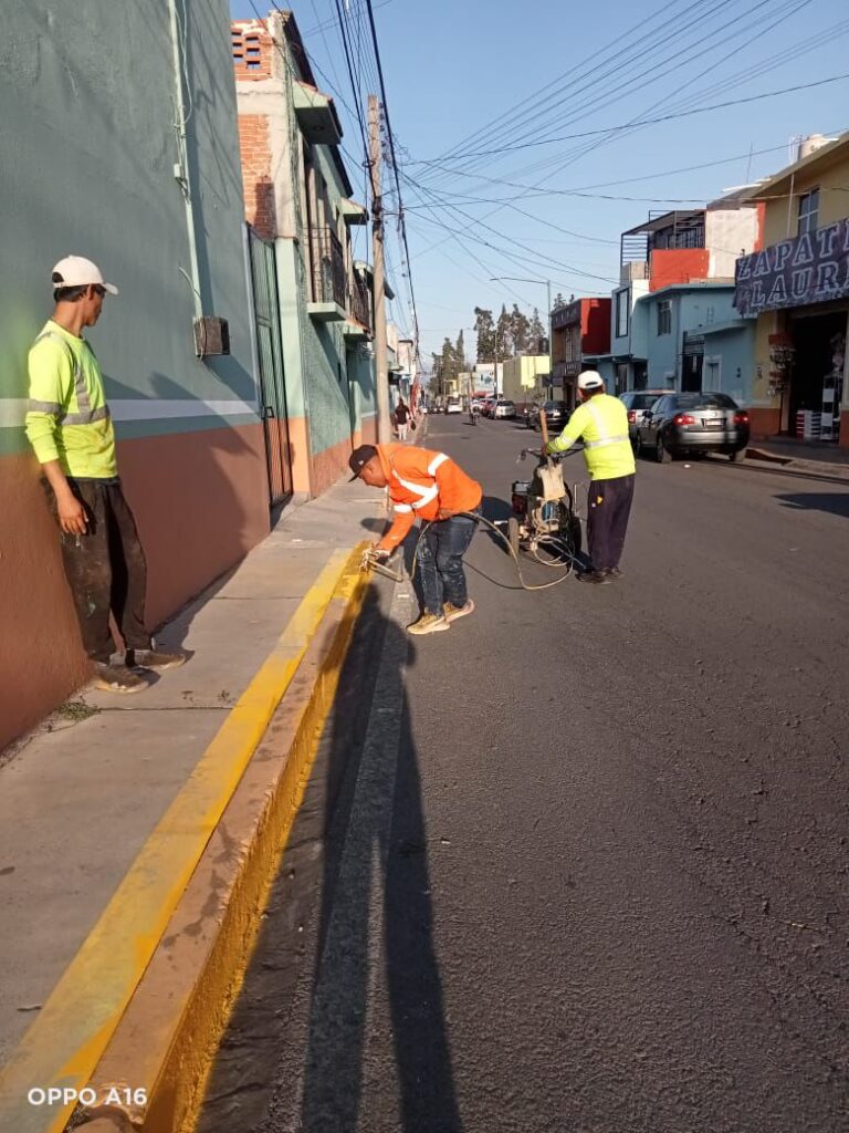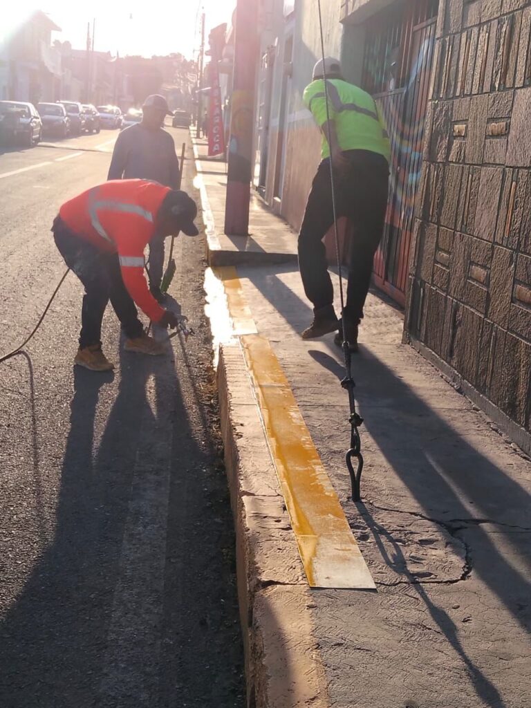 Huamantla, Tlax., — El Gobierno Municipal de Huamantla informa a la ciudadanía que personal de obra pública se encuentra realizando trabajos de pintura y rehabilitación de guarniciones en diversos puntos del municipio, con el objetivo de fortalecer la señalización vial y mejorar la imagen urbana.