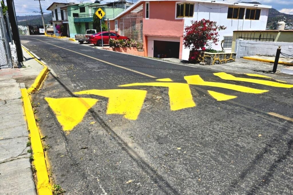Durante las recientes jornadas de trabajo, cuadrillas municipales intervinieron en San Diego Metepec con labores de colocación de pintura en tope sobre la calle Reforma.