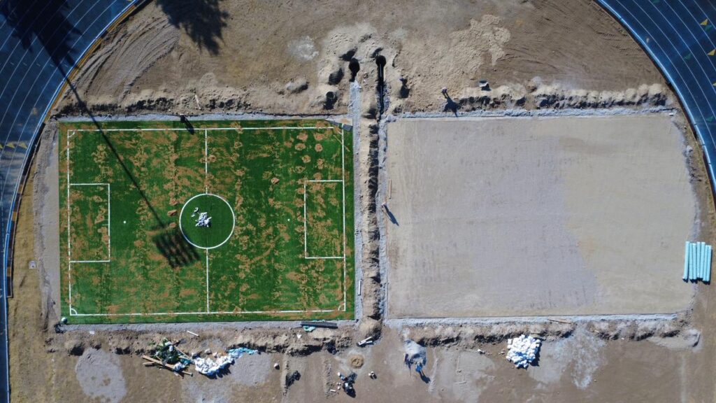 REGISTRAN AVANCES LAS NUEVAS CANCHAS DE FÚTBOL 5 EN LA UNIDAD DEPORTIVA MIGUEL ARROYO ROSALES