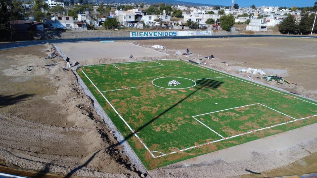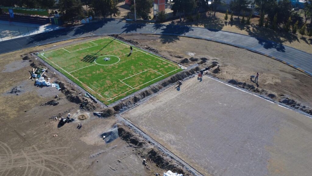 Gracias al trabajo coordinado entre los distintos órdenes de gobierno, se logró la autorización de dos canchas de fútbol 5 para Huamantla, proyecto que contempla además la optimización del espacio deportivo con el ajuste en la ubicación de la cancha de fútbol soccer, así como la conservación de la pista de tartán, la cual no será modificada en su estructura.