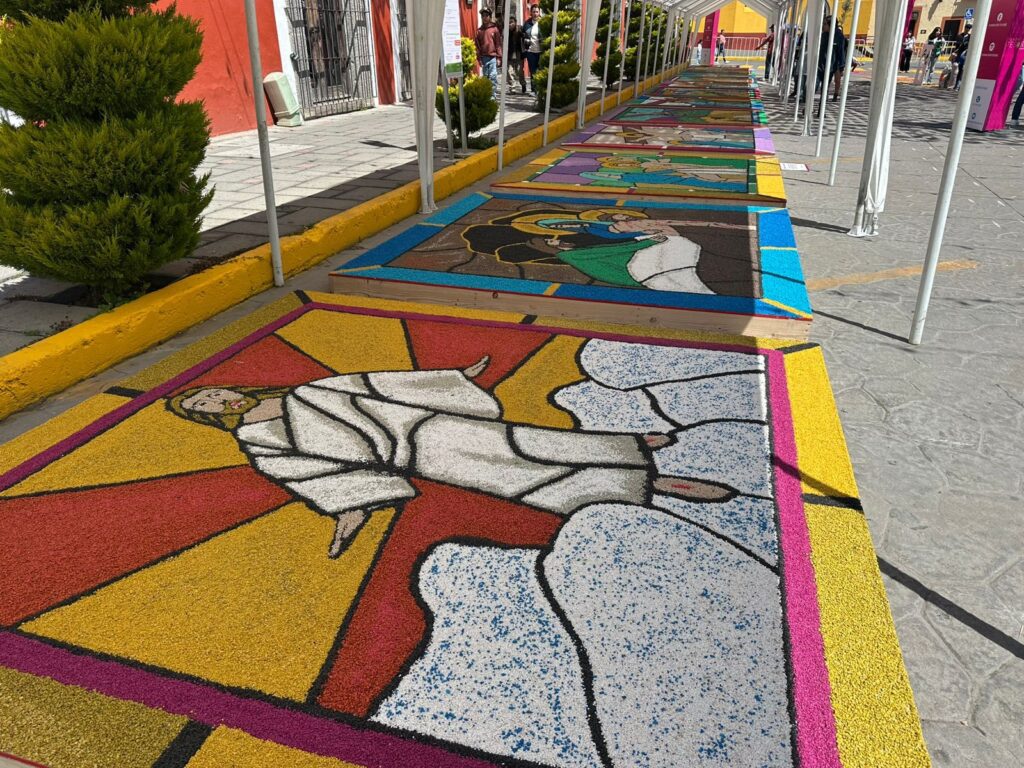 En el parque Juárez, la fundación “Te Soñé” presenta una exposición de alfombras elaboradas por talentosos artesanos, mientras que en el pasaje Margarita Maza de Juárez se puede apreciar un tapete realizado por el Gobierno Municipal de Huamantla, ambos ejemplos del trabajo colectivo que mantiene viva esta tradición.
