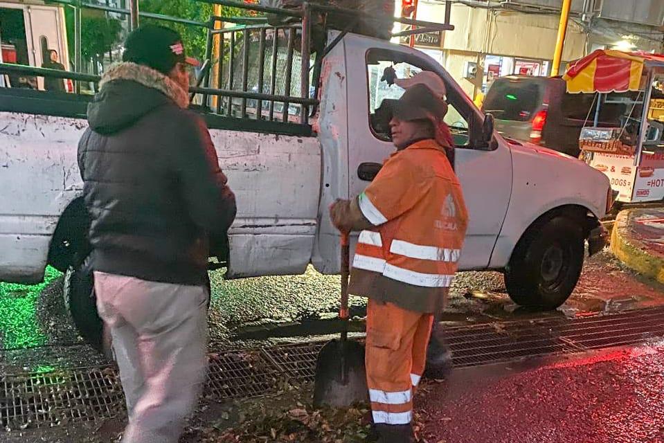 De esta forma, brigadas del Ayuntamiento se desplegaron en distintos puntos para atender encharcamientos e inundaciones menores, principalmente en zonas donde las rejillas pluviales se vieron obstruidas por acumulación de basura y hojarasca, lo que complicó el desfogue del agua. Para tal efecto, las labores se llevan a cabo con maquinaria pesada, como retroescavadoras y el camión Vactor, a fin de desazolvar y atender los taponamientos en registros y coladeras.