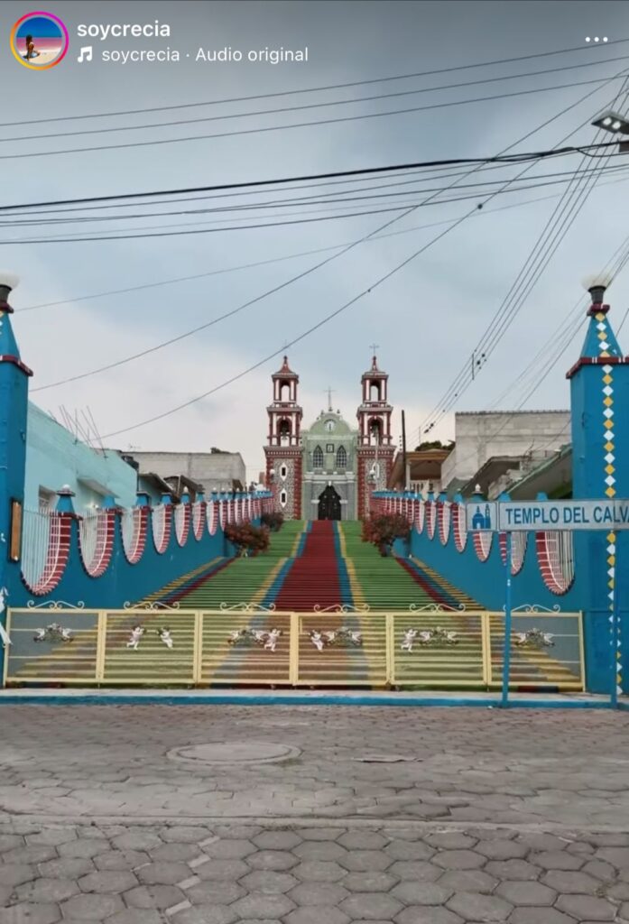 El Templo del Calvario destaca por su singular estilo lleno de colores vibrantes y detalles únicos, lo que lo ha convertido en un punto de interés cada vez más visitado por turistas y creadores de contenido.