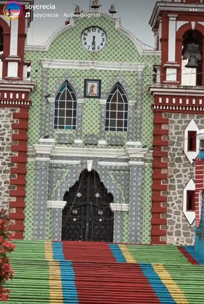 A través de un video compartido en sus plataformas, la influencer conocida como “Crecia” expresó su asombro al encontrarse frente a la iglesia. “Nunca había visto una iglesia tan colorida; estoy enfrente y no lo puedo creer”, relató visiblemente emocionada.